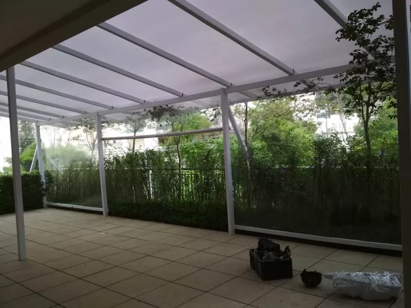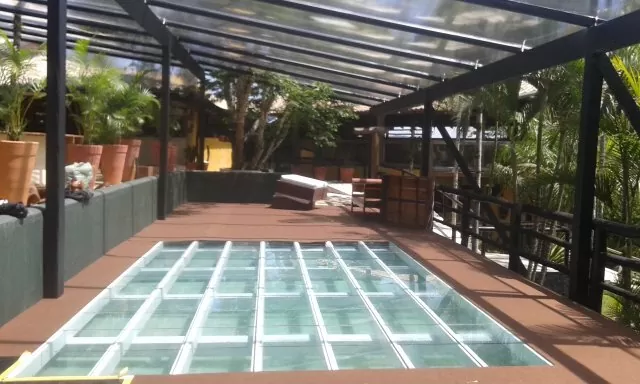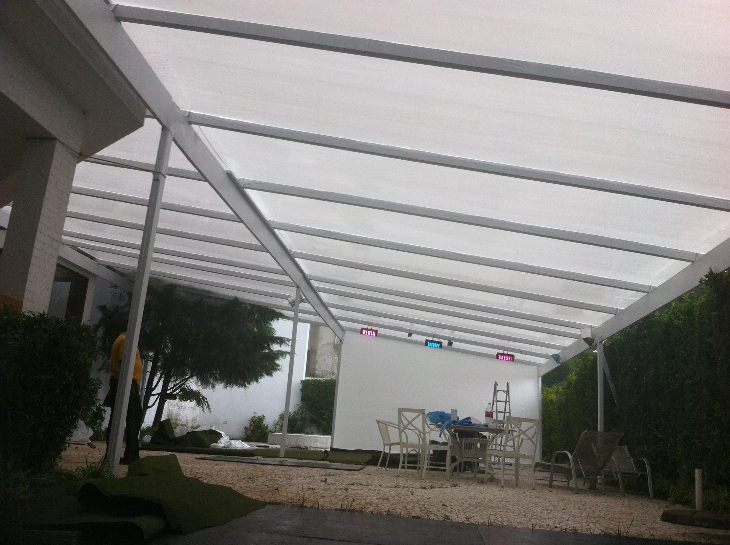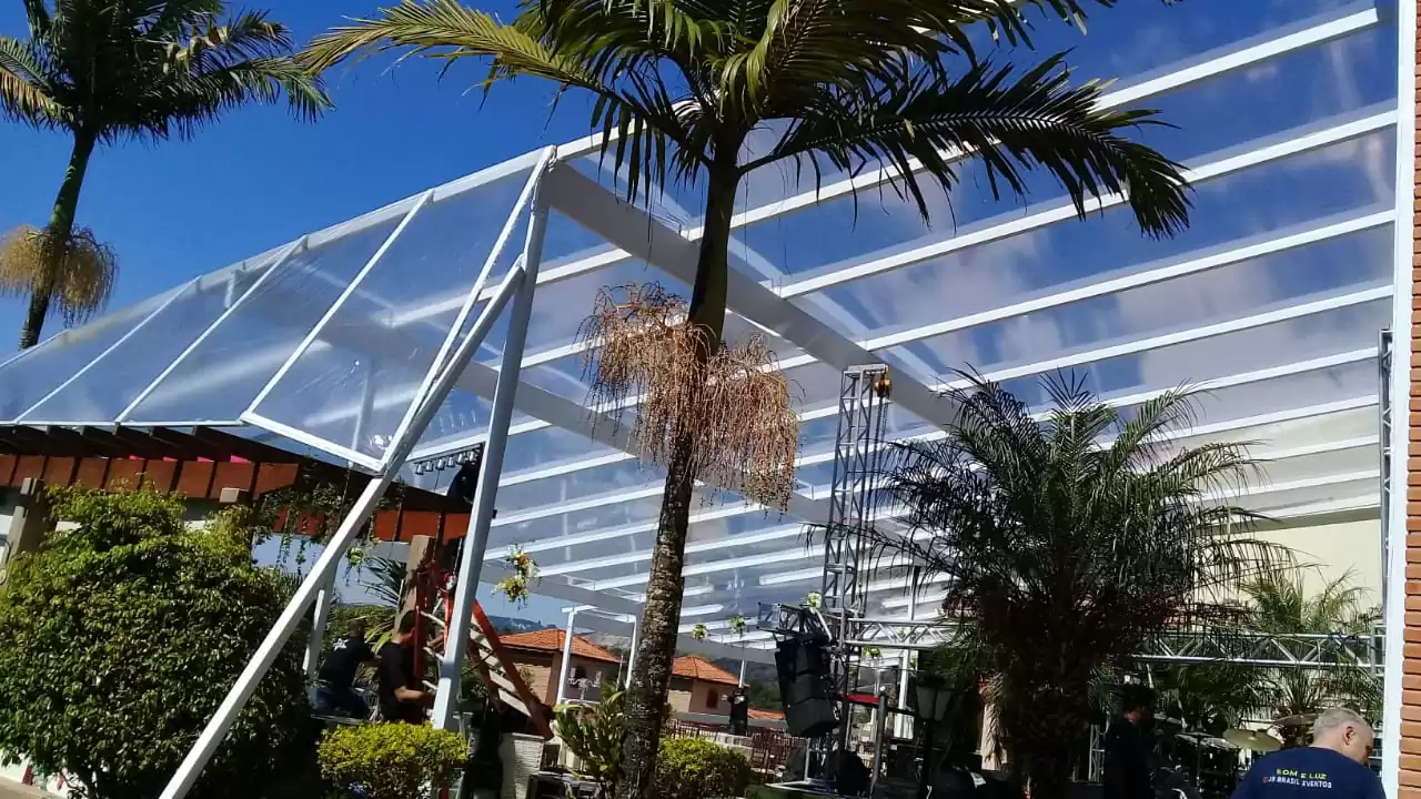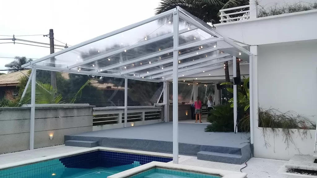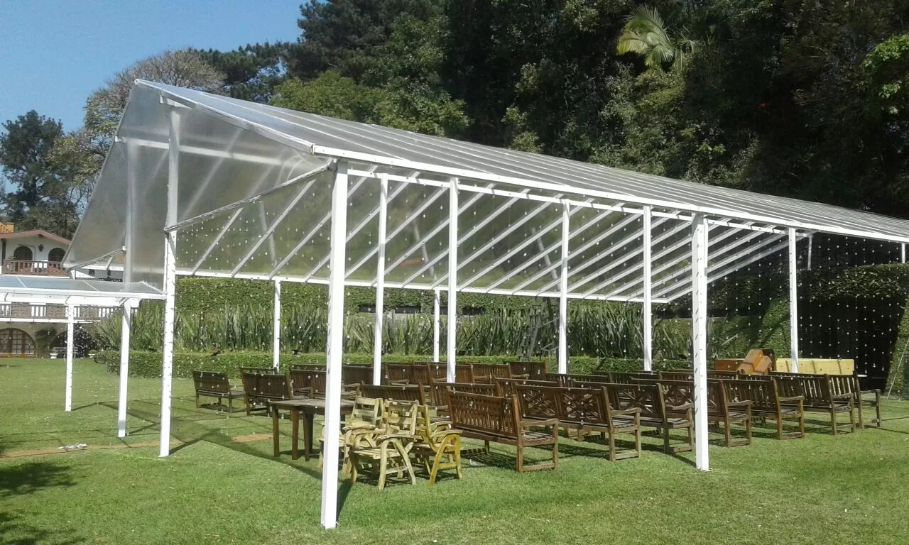 Realizamos montagem de toda a estrutura e, posteriormente, oferecemos opções de coberturas cristal, lona ou personalizadas, conforme a escolha do cliente.